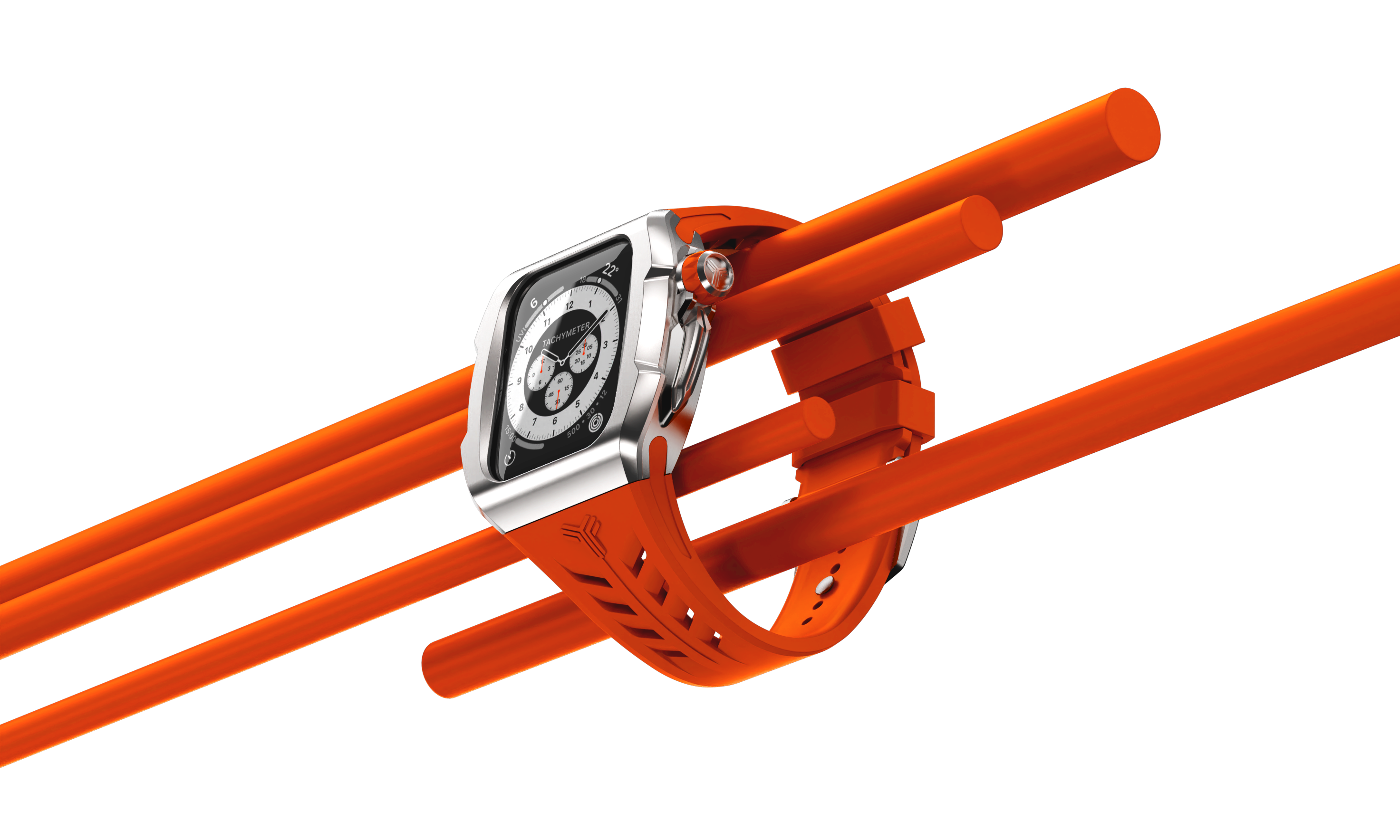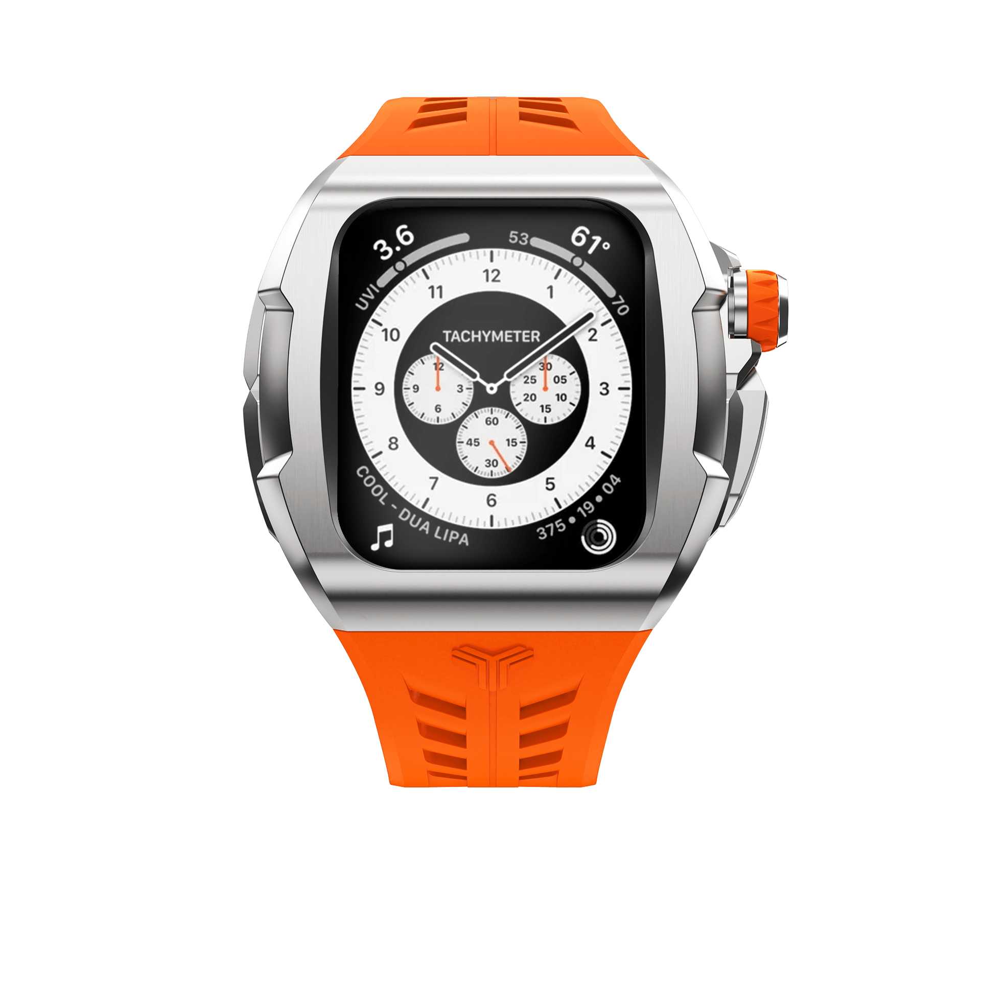 Discover the essence of style and innovation with the Shibuya Apple Watch Case - 45mm. This exceptional case showcases a vibrant warning orange strap that exudes energy, paired with a sleek stainless steel bezel for a touch of sophistication.