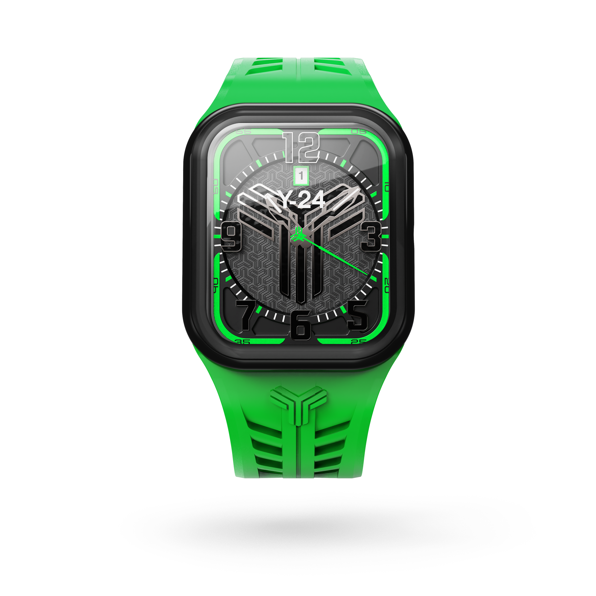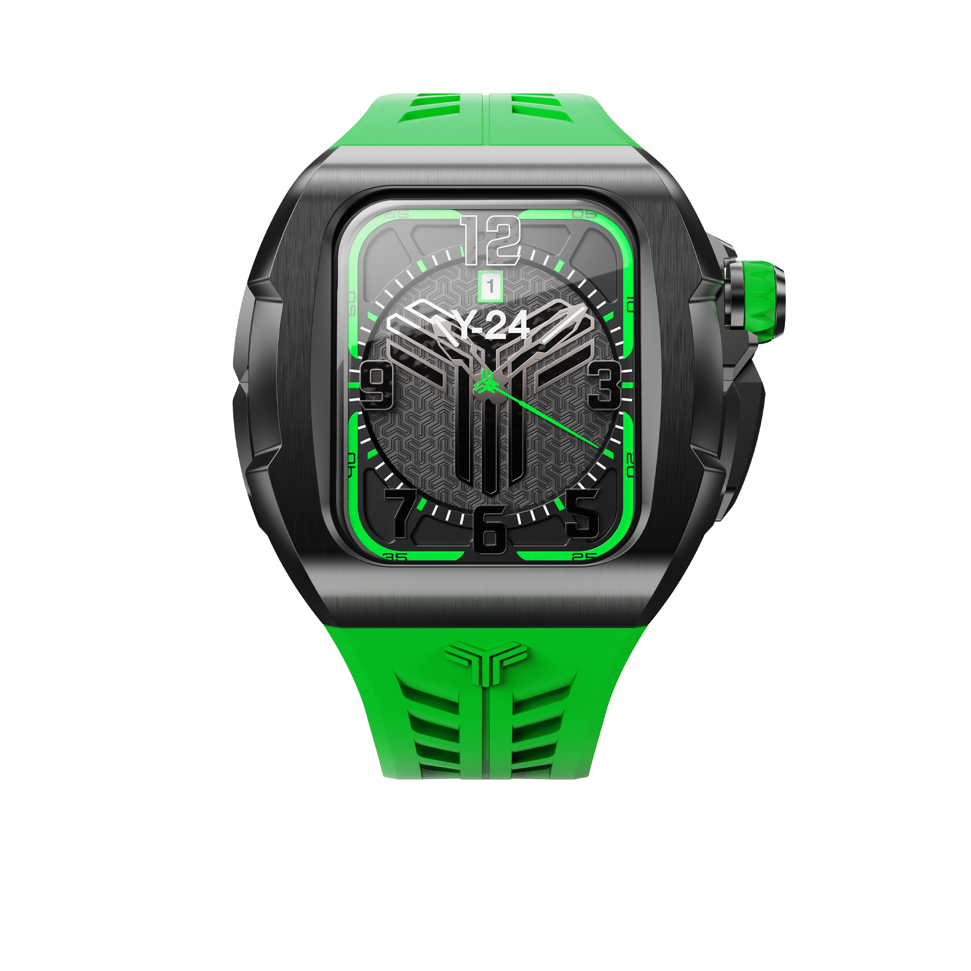 The premium silicone strap seamlessly fits Apple Watch 45mm, enabling you to personalize your style effortlessly. Featuring a sleek black design, in its casing and a bright green strap, the Pigalle Quartz Watch promises practicality and timeless style.