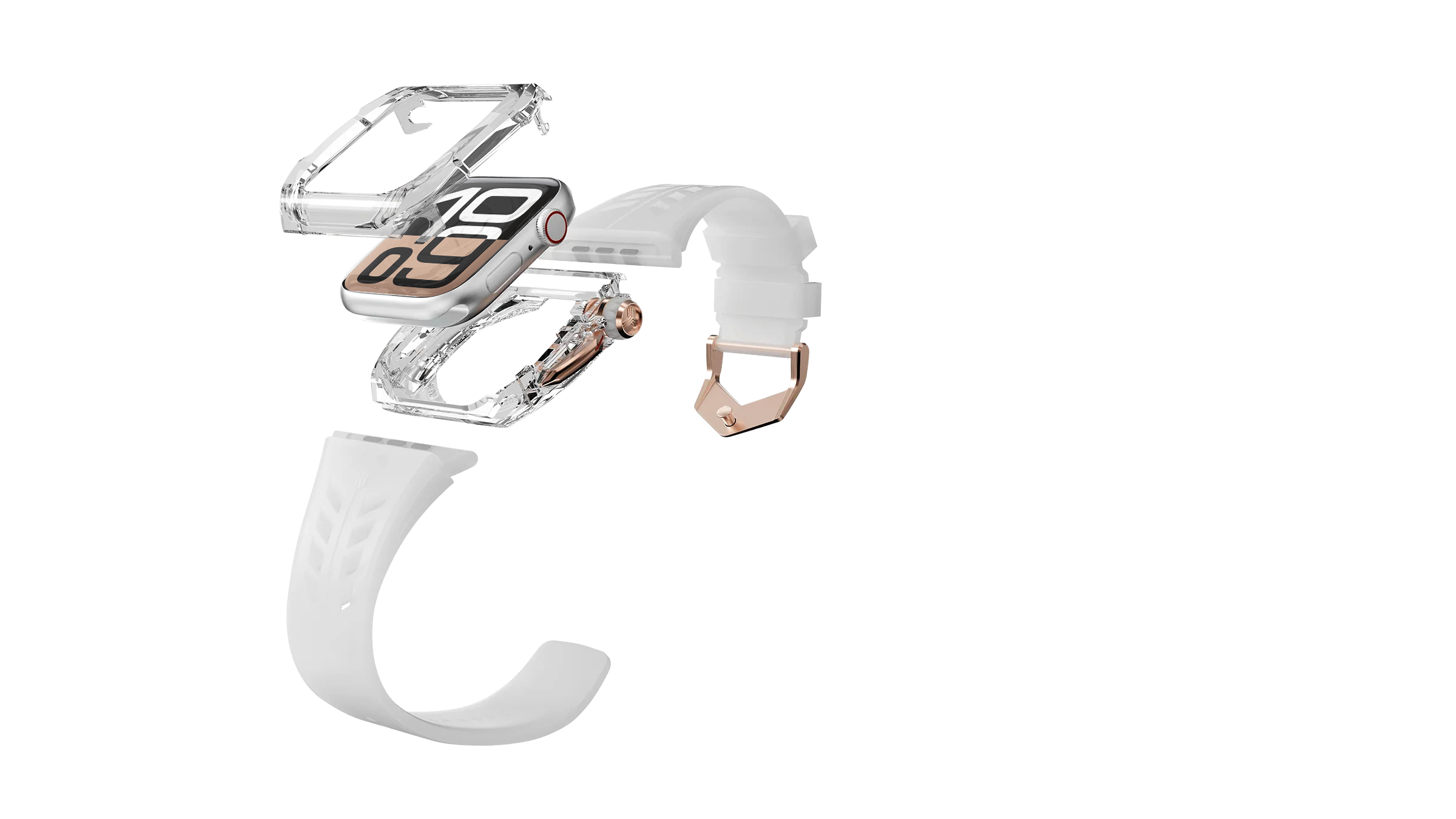 Experience the perfect fusion of style and innovation with the Bellevue for Apple Watch Series 10. This refined case features a sleek transparent strap, exuding freshness and modernity, complemented by a transparent nylon housing. Its fully transparent design showcases the Apple Watch and intricate case details, offering a sophisticated and contemporary aesthetic.