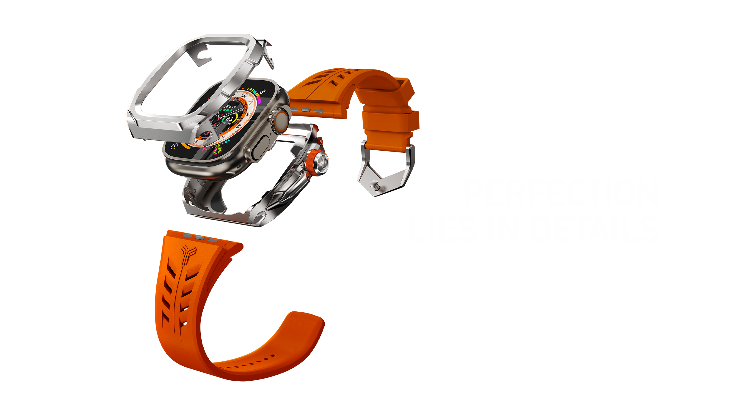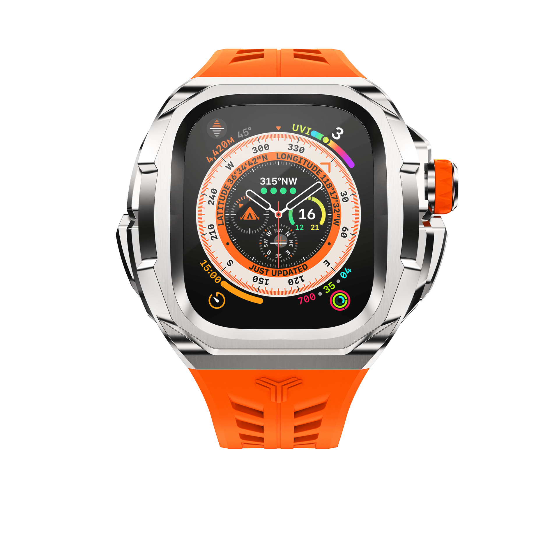 Elevate your Apple Watch Ultra to new heights of style with the Shibuya 49mm. Embrace the captivating fusion of a vibrant warning orange strap and a sleek stainless steel bezel, showcasing a perfect blend of energy and sophistication that effortlessly distinguishes you from the rest.