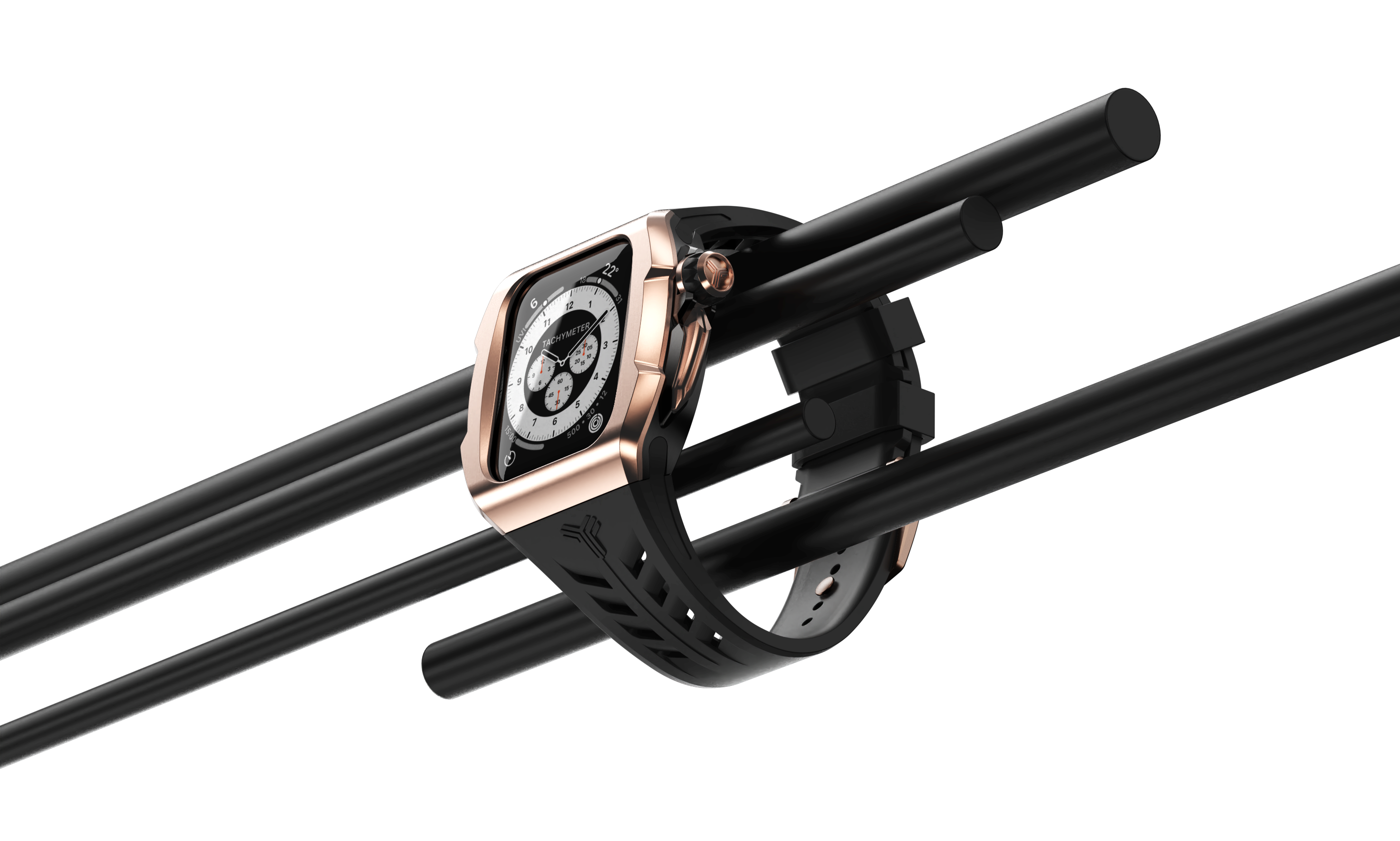 Immerse yourself in sophistication with the Söder Apple Watch Case - 45mm. Meticulously crafted from 316L stainless steel, this exceptional case showcases exquisite rose gold detailing that perfectly harmonizes with the sleek jet black strap and sides, creating a captivating fusion of style and elegance.