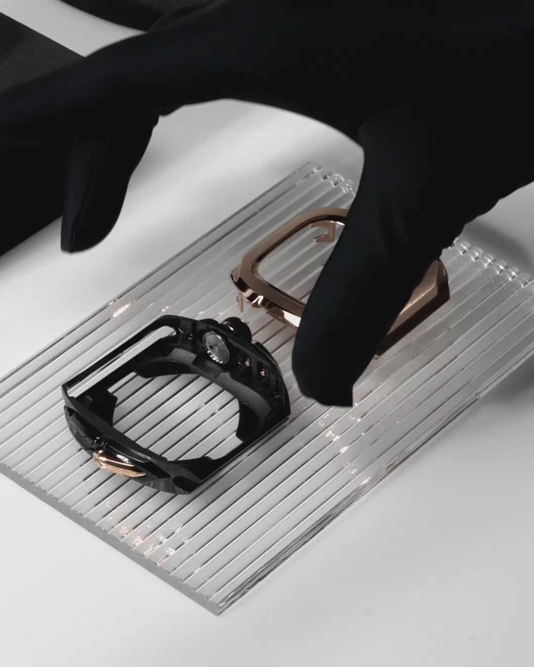 Immerse yourself in sophistication with the Söder Apple Watch Case - 49mm. Meticulously crafted from 316L stainless steel, this exceptional case features exquisite rose gold detailing that beautifully contrasts with the sleek jet black strap and sides, creating a striking and luxurious combination.